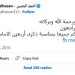 السلام عليكم ورحمة الله وبركاتهإنا لله وإنا اليه راجعونعظم الله أجوركم جميعا بمناسبة ذكرى أربعين الامام الحسين... https://t.co/yZNX9v2ThZ— Ahmed Alhasan...